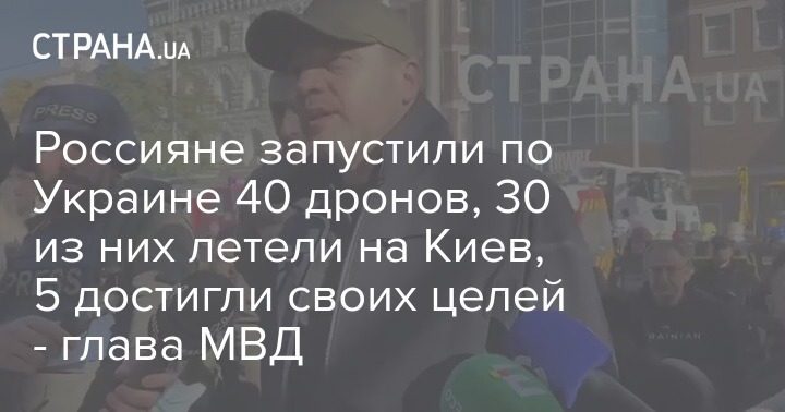 Глава МВД Денис Монастырской заявил, что сегодня по территории Украины запустили 40 дронов. 30 из них летели на Киев, большинство удалось сбить. 5 дронов достигли своих целей.