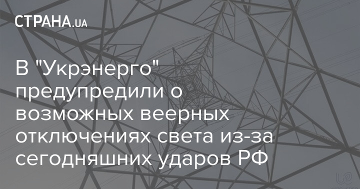 В "Укрэнерго" предупредили о возможных веерных отключениях света из-за сегодняшних ударов РФ