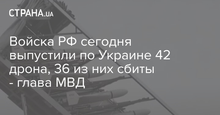 Войска РФ сегодня выпустили по Украине 42 дрона, 36 из них сбиты - глава МВД