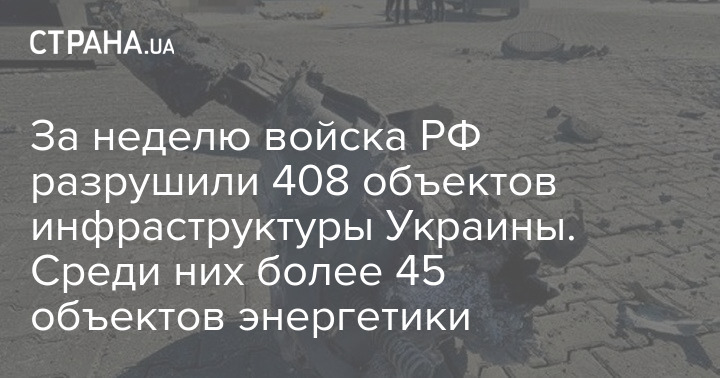 За неделю войска РФ разрушили 408 объектов инфраструктуры Украины. Среди них более 45 объектов энергетики