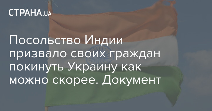 Посольство Индии в Украине рекомендует своим гражданам не ездить в Украину, а тем, кто находится в стране, как можно скорее покинуть её.