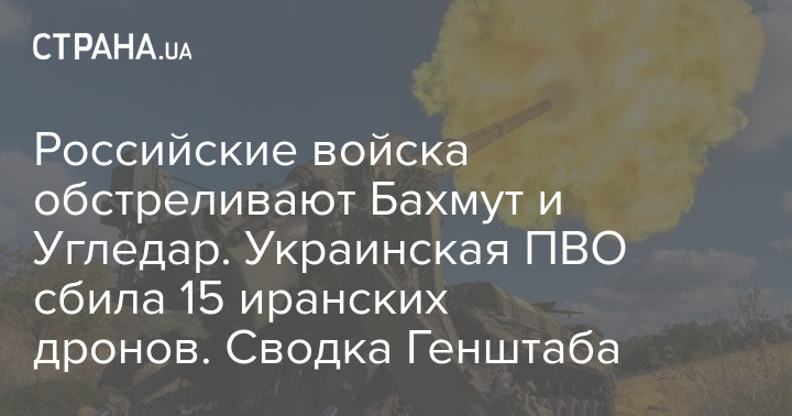 Российские войска обстреливают Бахмут и Угледар. Украинская ПВО сбила 15 иранских дронов. Сводка Генштаба