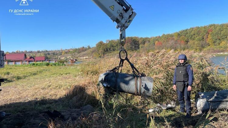 "17 октября от жителей Обуховского района Киевской области было получено обращение об обследовании местной акватории. Группа подводного разминирования и специальных водолазных работ Мобильного спасательного центра быстрого реагирования ГСЧС Украины провела проверку акватории и изъяла боевую часть сбитой вражеской ракеты", - говорится в сообщении.