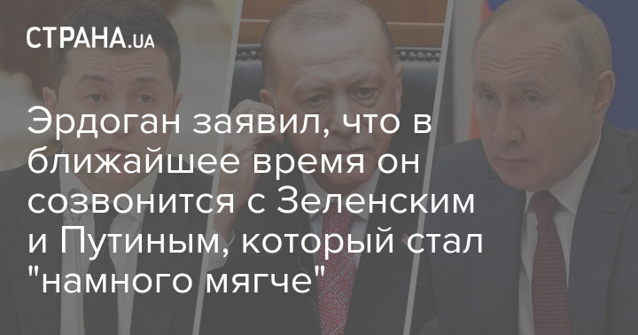Эрдоган заявил, что в ближайшее время он созвонится с Зеленским и Путиным, который стал "намного мягче"