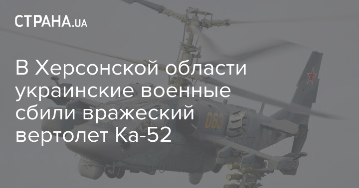 Украинские военные сбили российский вертолет Ка-52 над Херсонской областью.