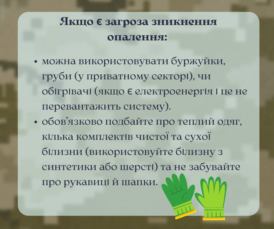 Киевлянам рекомендуют держать дома заряженные фонарики и пауербанки, запастись термосами, в которые можно залить горячую воду.