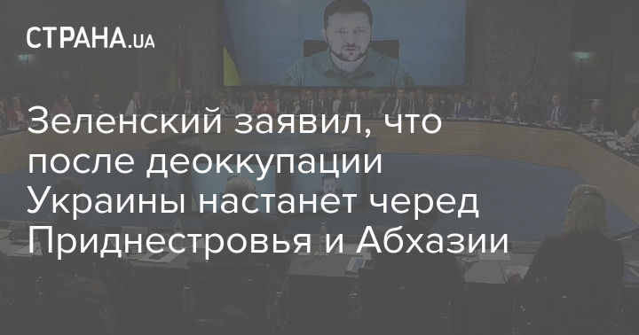Президент Украины Владимир Зеленский в видеообращении к продолжающемуся в хорватском Загребе парламентскому саммиту Крымской платформы заявил, что после деоккупации Украины настанет черед Приднестровья, Абхазии и "северных территорий" Японии (южные Курильские острова - Ред.).