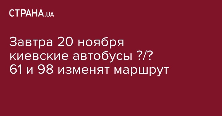 Завтра, 20 ноября, в Киеве из-за проведения продовольственной ярмарки на ул. Александра Сабурова, на участке от ул. Оноре де Бальзака до просп. Владимира Маяковского 20 ноября, будет изменены маршруты автобусов №/№ 61, 98. Об этом сообщает пресс-служба КГГА.