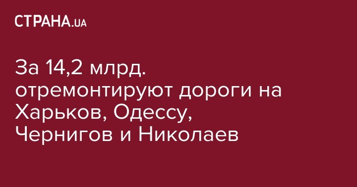 "Выделяем 6,5 млрд грн на реконструкцию дорог. Вместе с помощью от международных организаций и местных бюджетов объем средств составит 14,2 млрд грн", - отмечается в сообщении.