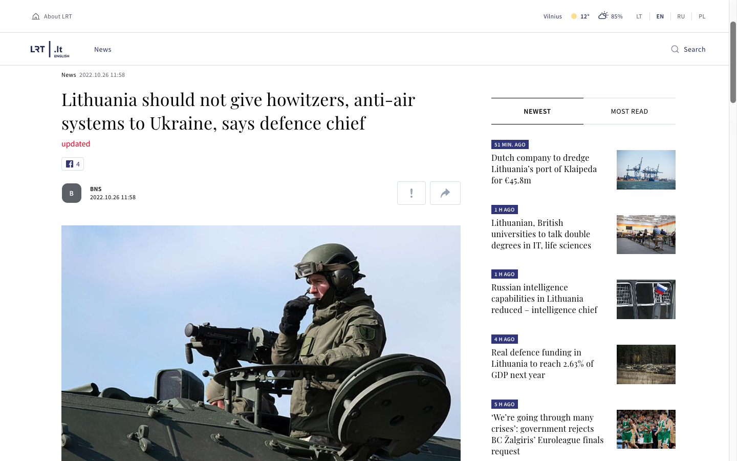 Министр обороны Литвы Вальдемарас Рупшис выступил против передачи Украине гаубиц PzH 2000 и систем ПВО NASAMS и озвучит свою позицию на ближайшем заседании Государственного совета обороны.