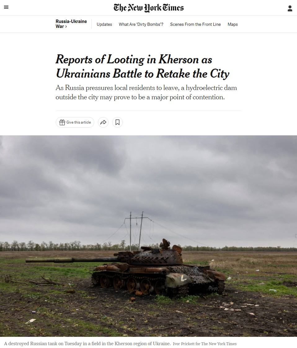 При этом нет признаков, что Россия готовится покидать Херсон, что указывает на то, что РФ намерены воевать за город - пишет New York Times.