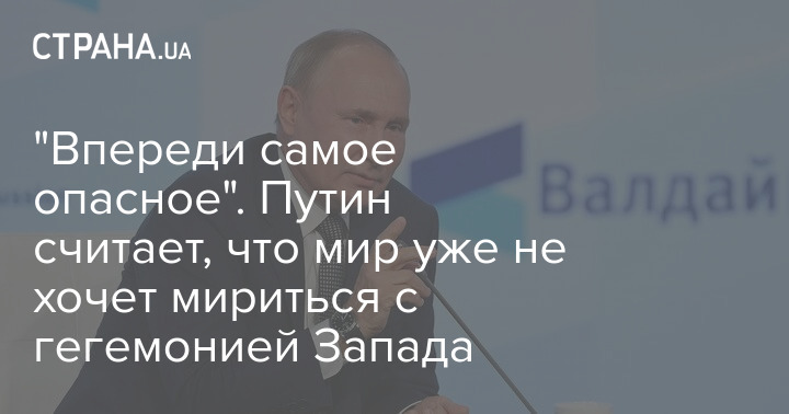 "Мир стоит на историческом рубеже. Впереди самое опасное, непредсказуемое и важное десятилетие со времен Второй мировой войны. Период безраздельного доминирования Запада в мировых делах завершается", - сказал Путин.