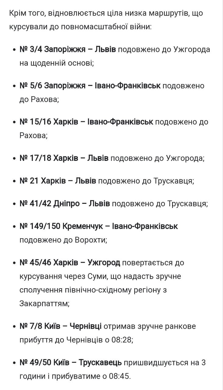 • № 149/150 Кременчуг – Ивано-Франковск продлен до Ворохты;