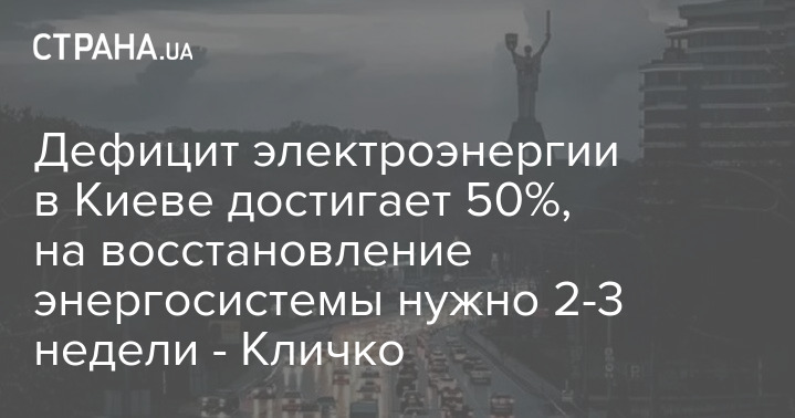 Дефицит электроэнергии в Киеве достигает 50%, на восстановление энергосистемы нужно 2-3 недели - Кличко