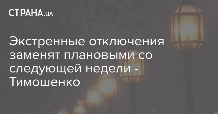 Экстренные отключения заменят плановыми со следующей недели - Тимошенко