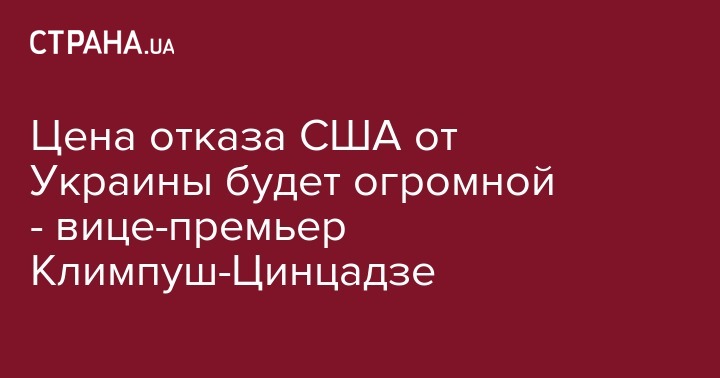 Цена отказа США от Украины будет огромной - вице-премьер Климпуш-Цинцадзе