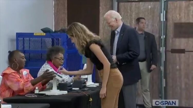 Небольшая заминка произошла уже на этапе регистрации, когда Байден оставлял свою подпись за выданный бюллетень. Внучка справилась с устройством для регистрации с первого раза и прошла в кабинку для голосования. Чуть позже в соседнюю проследовал и Байден.