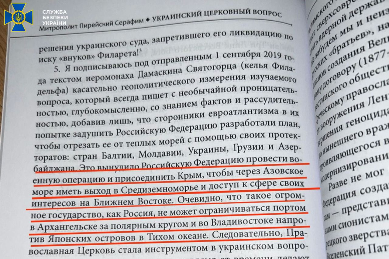В ходе досудебного расследования установлено, что антиукраинские материалы активно распространялись среди священнослужителей и верующих, чтобы сформировать среди них позиции, выгодные стране-агрессору. В частности, оправдывалась аннексия Крыма.
