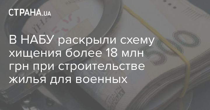 Национальное антикоррупционное бюро Украины сообщает о раскрытии схемы по хищению более 18 миллионов гривен при строительстве жилья для Минобороны.