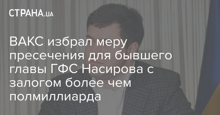 В Высшем антикоррупционном суде (ВАКС) избрали для бывшего главы ГФС Романа Насирова меру пресечения в виде содержания под стражей с альтернативным залогом в 523 млн гривен. Срок действия содержания под стражей для Насирова определен до 17 декабря 2022 года.