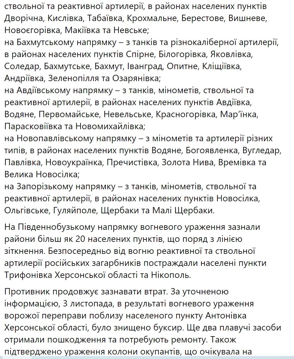 - Противник ведет наступательные действия в Бахмутском, Авдеевском и Новопавловском направлениях.