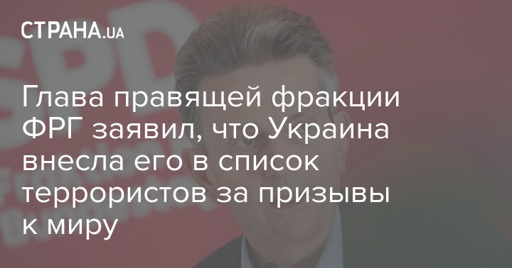 Глава правящей фракции ФРГ заявил, что Украина внесла его в список террористов за призывы к миру