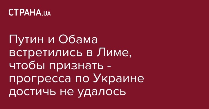 Президент США Барак Обама и президент России Владимир Путин констатировали отсутствие прогресса по Украине во время встречи "на полях" саммита АТЭС в Лиме. Об этом сообщает "Интерфакс".