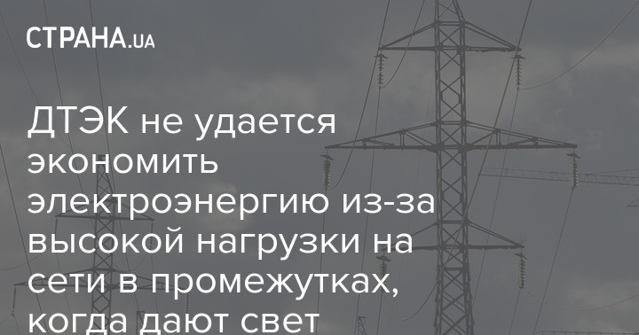 ДТЭК не удается экономить электроэнергию для стабилизации энергосистемы, потому что люди начинают заниматься всеми домашними делами в промежуток, когда дают свет.