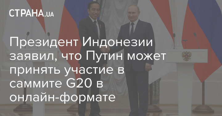 Президент России Владимир Путин может поучаствовать в саммите G20 в онлайн-формате, как и украинский президент Владимир Зеленский, сообщил президент Индонезии Джоко Видодо.