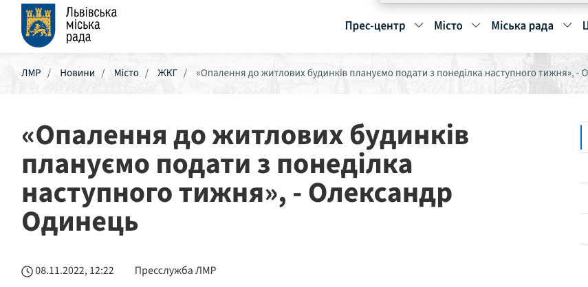 Во Львове уже со следующей недели планируют дать отопление в жилых домах. Обогрев бюджетных учреждений - школ, садов, больниц, поликлиник и т.д. - начался со вчерашнего дня, 7 ноября.