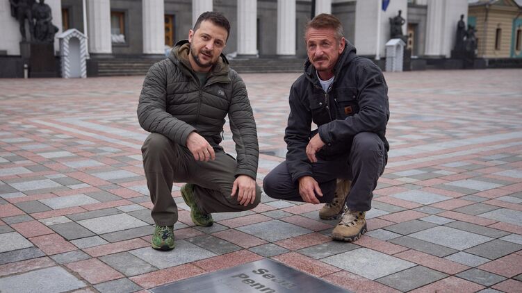 Президент добавил фоторепортаж о посещении с Пенном Аллеи смелости – места по типу голливудской Аллеи славы, где между тротуарными плитками будут вмонтированы таблички с именами многих мировых лидеров, которые помогли Украине во время войны. Первой из них стала именная табличка Шона Пенна.