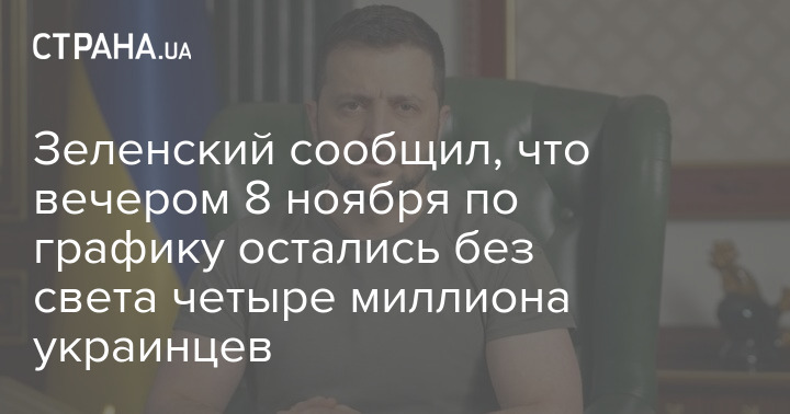 По данным президента, сегодня вечером около 4 млн украинцев в 14 областях и Киеве по графику отключены от электричества. Он заверил, что работы по восстановлению энергетической инфраструктуры идут.