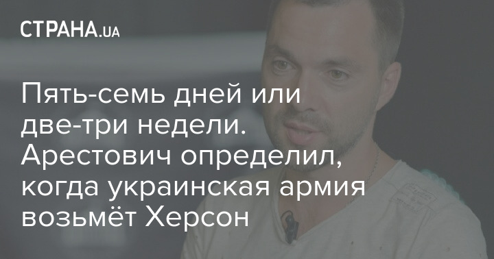 Пять-семь дней или две-три недели. Арестович определил, когда украинская армия возьмёт Херсон