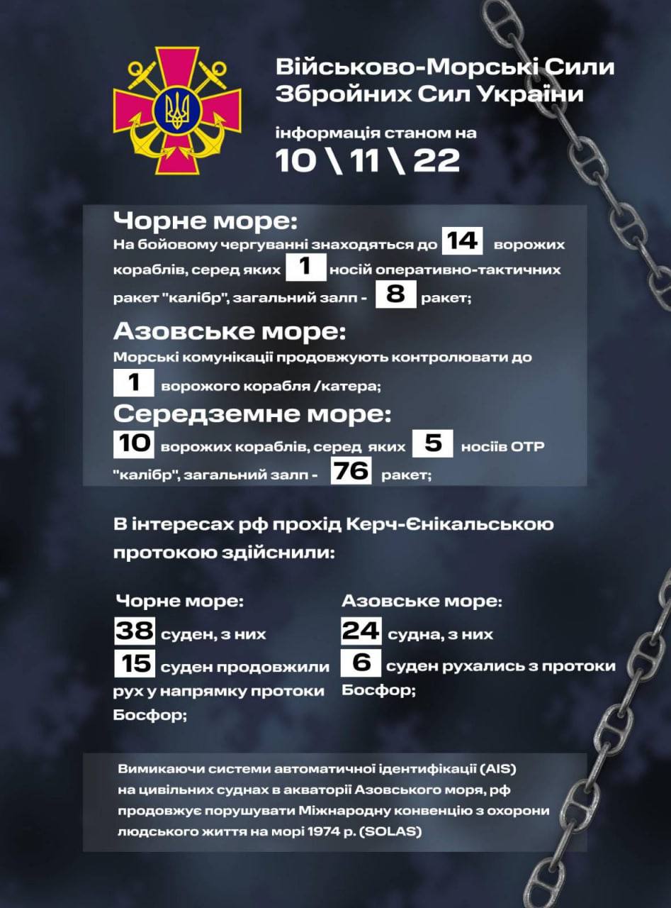 Незадолго до этого ВСУ сообщали, что Россия усилила черноморскую ракетную группировку подводной лодкой, а в море дежурят 3 ракетоносителя.
