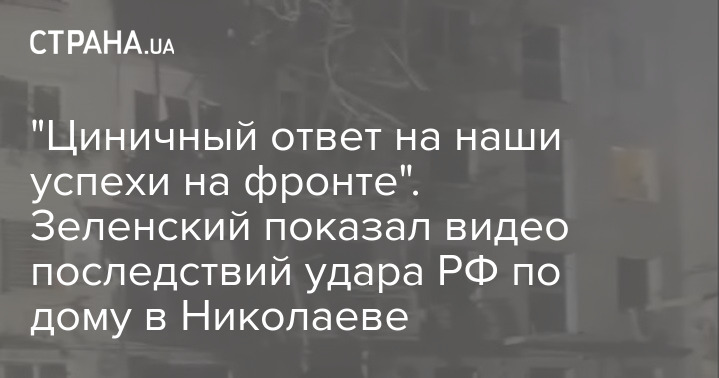 Президент Украины Владимир Зеленский опубликовал видео из Николаева, где российская ракета этой ночью разрушила жилую многоэтажку.