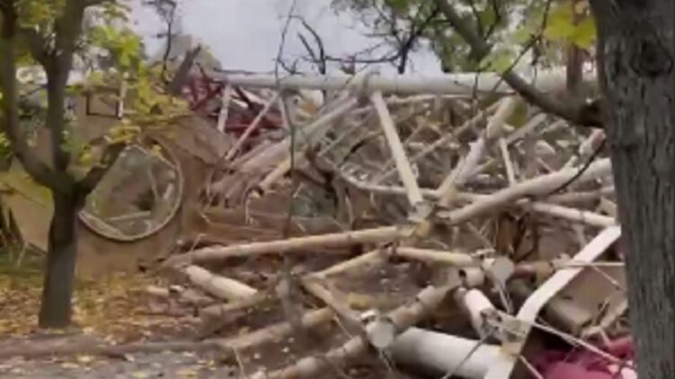 Последствия взрыва телевышки в Херсоне. Скриншот видео