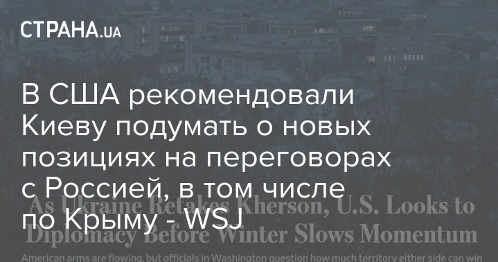 Высокопоставленные официальные лица США рекомендовали Киеву подумать о "реалистичных" позициях на переговорах с Россией и о корректировке своих условий, в частности по Крыму, пишет в сегодняшней статье The Wall Street Journal.