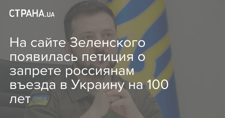 На сайте президента Украины Владимира Зеленского зарегистрирована очередная петиция с требованием запретить въезд россиянам на территорию Украины на длительный срок. На это раз - на 100 лет.