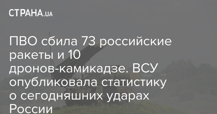 ПВО сбила 73 российские ракеты и 10 дронов-камикадзе. ВСУ опубликовала статистику о сегодняшних ударах России