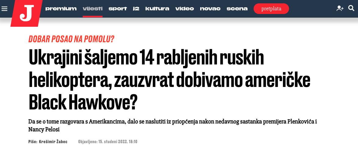 Взамен Хорватия хочет получить от США вертолеты Black Hawk, о чем уже были проведены переговоры с Вашингтоном.