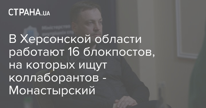 Министр внутренних дел Денис Монастырский рассказал, что в Херсонской области работают 16 блокпостов, на которых ищут коллаборационистов.