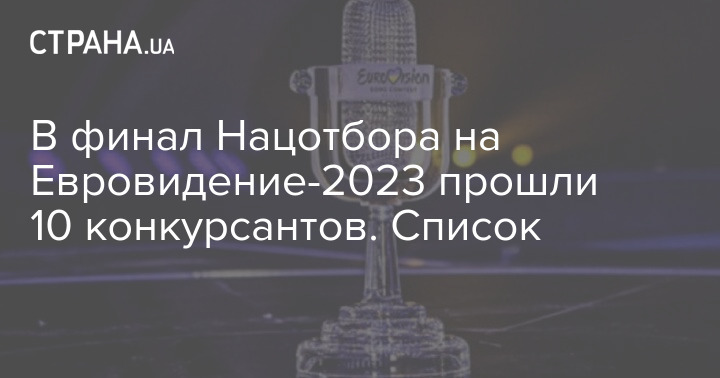 Стали известны финалисты Нацинального отбора на Евровидение-2023. В финал Нацотбора прошли 10 конкурсантов. Они будут бороться за право представлять Украину на международном песенном конкурсе.