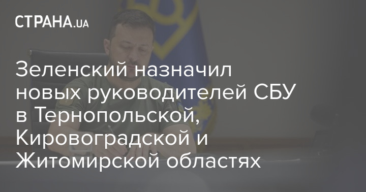 Президент Владимир Зеленский назначил новых глав Службы безопасности Украины в Тернопольской, Кировоградской и Житомирской областях.