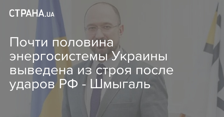 Из-за ракетных ударов по критической инфраструктуре почти половина энергосистемы Украины выведена из строя, заявил премьер-министр Денис Шмыгаль на брифинге с вице-президентом Еврокомиссии Валдисом Домбровскисом в Киеве.