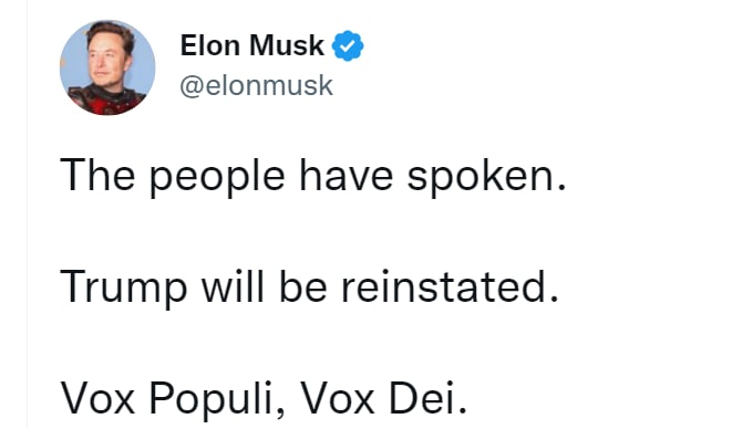 Илон Маск восстановил аккаунт Дональда Трампа в Twitter