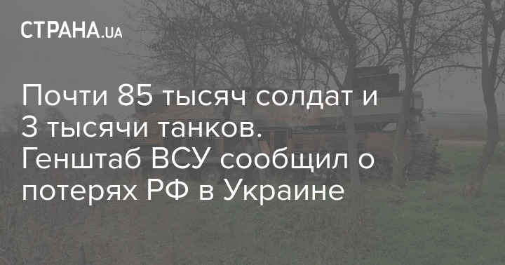 Генштаб ВСУ заявляет, что по состоянию на 21 ноября общие потери РФ в живой силе за время войны составили 84 600 солдат. За минувшие сутки были ликвидированы 390 военных РФ.
