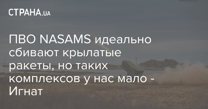 Имеем две системы NASAMS, которые, как и IRIS-T, уже проявили себя в противовоздушном бою, - это современные комплексы с хорошей системой обнаружения целей, а также ракетами, которые фактически полностью уничтожают крылатые ракеты врага. Проблема в том, что имеем мало этих систем", - отметил Игнат.