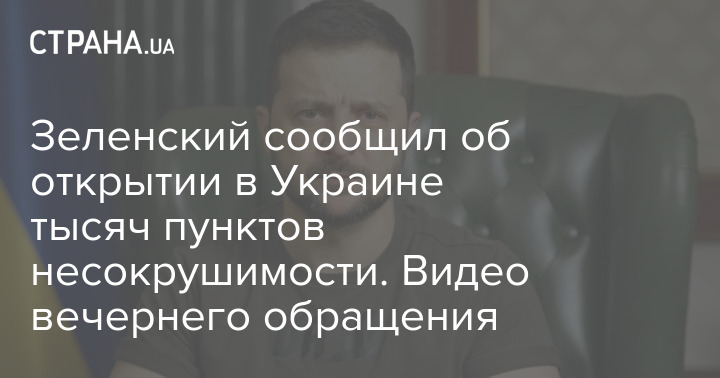 Зеленский сообщил об открытии в Украине тысяч пунктов несокрушимости. Видео вечернего обращения