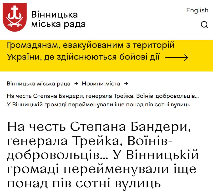 Ранее в Винницкой области в рамках борьбы с советским прошлым переименовали улицу Бандеры в Логанскую.