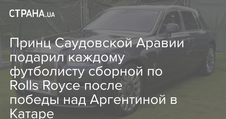 Наследный принц Саудовской Аравии Мухаммед бен Сальман подарил футболистам национальной сборной по автомобилю Rolls Royce Phantom после победы над Аргентиной на Чемпионате мира в Катаре.
